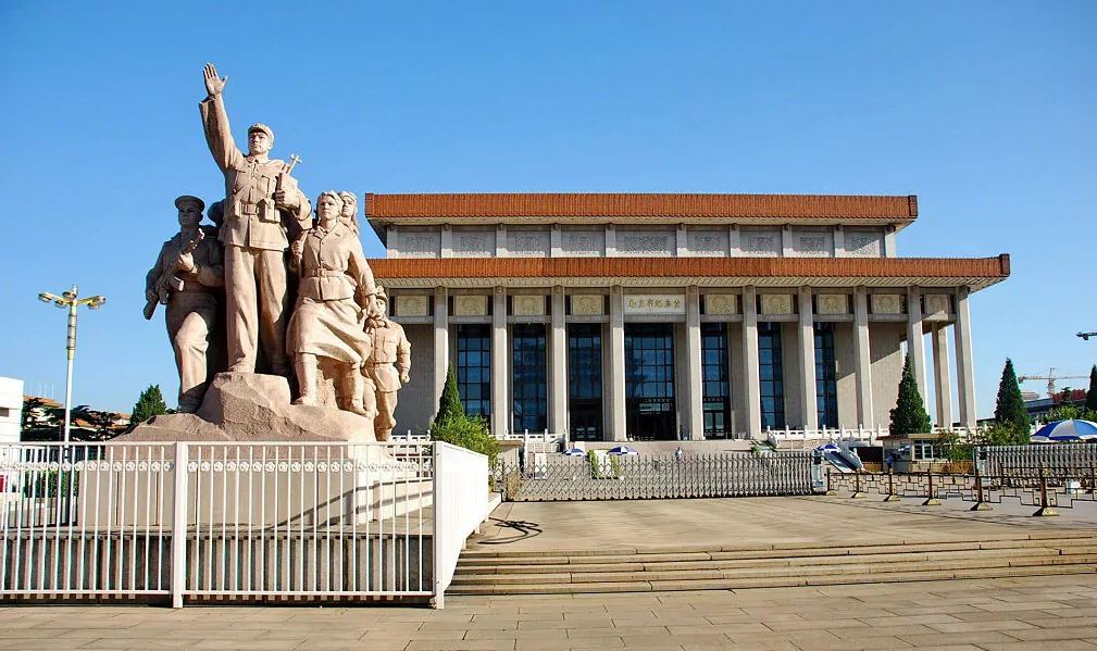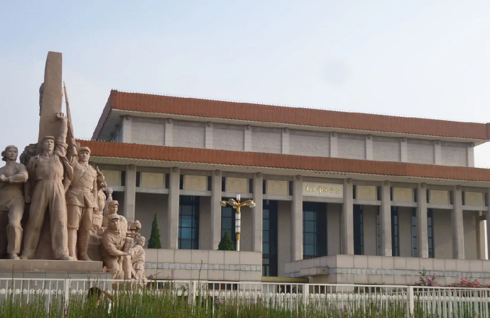毛主席纪念堂于1977年9月9日举行落成典礼并对外开放,占地57000多平方米,总建筑面积为28000平方米。主体呈正方形,外有44根福建黄色花岗石建造的明柱,柱间装有佛山石湾花饰陶板,通体青岛花岗石贴面。屋顶有两层玻璃飞檐,檐间镶葵花浮雕。基座有两层平台,台帮全部用四川大渡河旁的枣红色花岗石砌成,四周环以房山汉白玉万年青花饰栏杆。